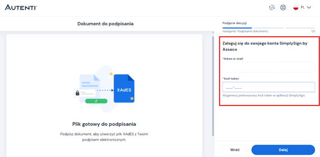 - Zaloguj się na Platformę Autenti.