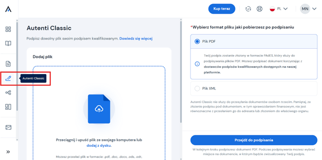- Z menu bocznego wybierz Autenti Classic.